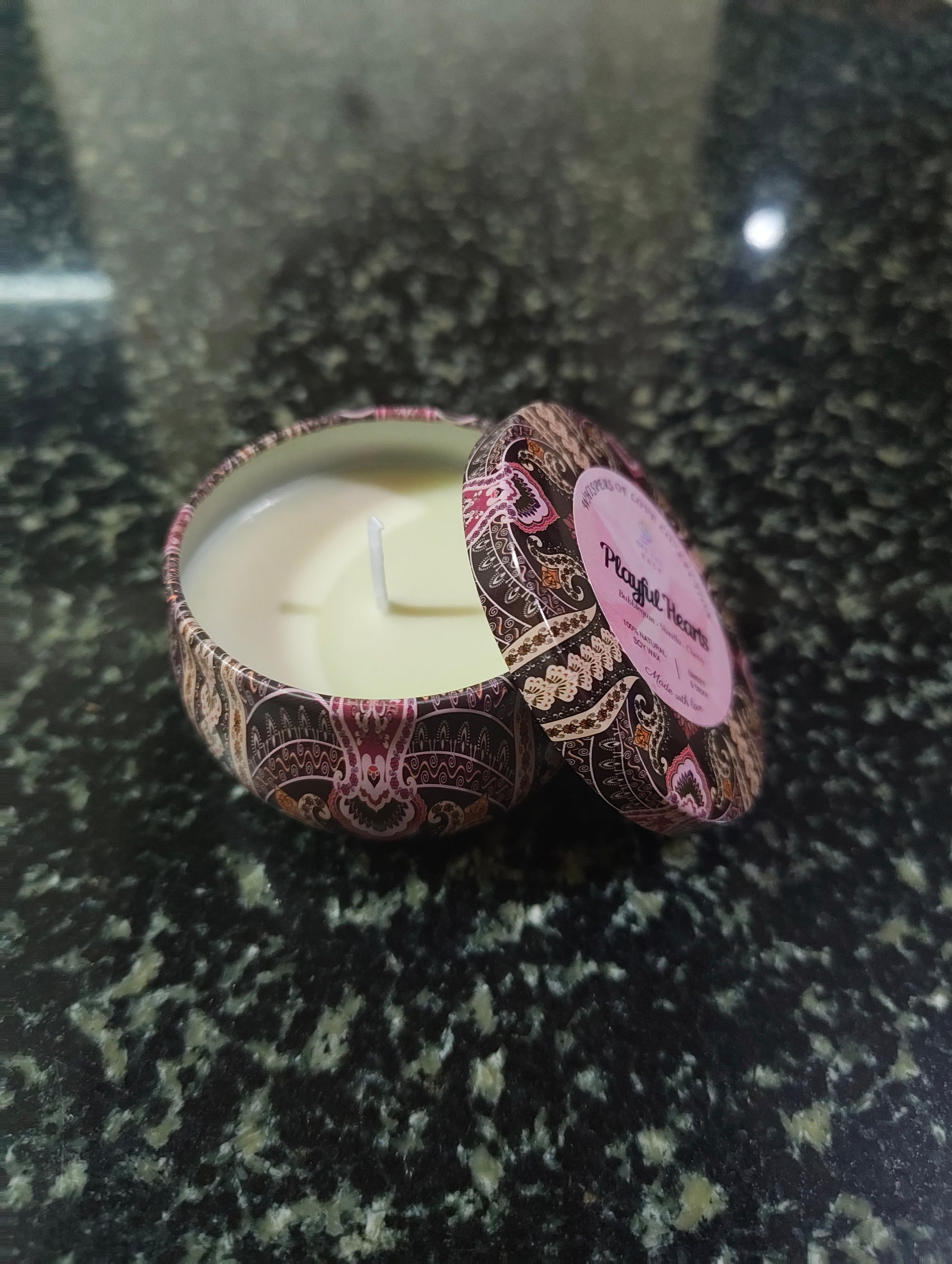 Playful Hearts Mandala Tin Candle